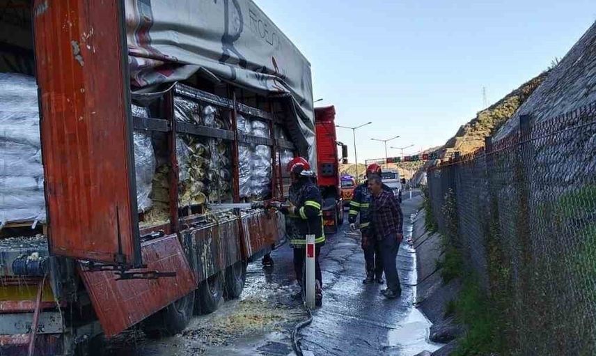 Osmaniye’nin Bahçe ilçesinde, seyir halindeki soya yüklü bir tırda yangın çıktı.