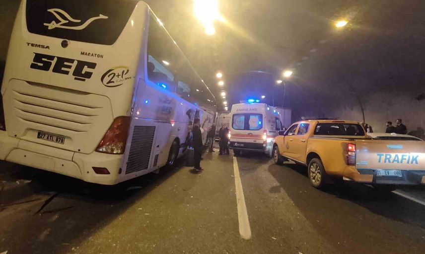 Kaza, Taşoluk Tüneli içerisinde gerçekleşti. Yine edinilen bilgilere göre, ait olduğu öğrenilemeyen 27 ATL 878 plakalı yolcu otobüsü, 73 ABN 524 plakalı tır ile çarpıştı. Çarpışmanın ardından otobüste bulunan 5 yolcu yaralandı.