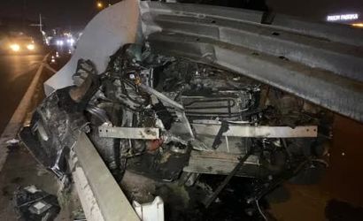 Kocaeli'nin Başiskele ilçesinde bir otomobil, seyir halindeyken bariyerlere saplanarak kullanılamaz hale geldi.