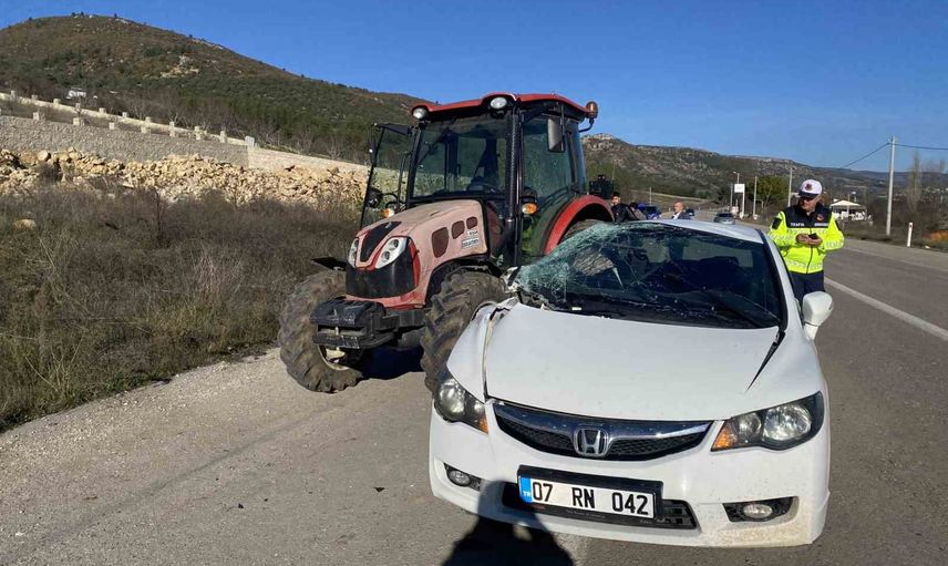 OTOMOBİL İLE TRAKTÖR ÇARPIŞTI; 3 YARALI