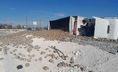 Konya’nın Karapınar ilçesinde sabah saatlerinde meydana gelen bir kaza, İpekçi Mahallesi Hüsrev Altınbaşak Caddesi’nde gerçekleşti. Devriye yola çıkan tır, sürücüsü R.Ü.'nün direksiyon hakimiyetini kaybetmesi sonucu devrildi.