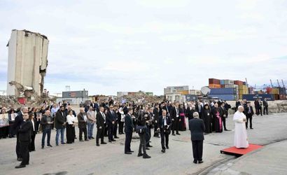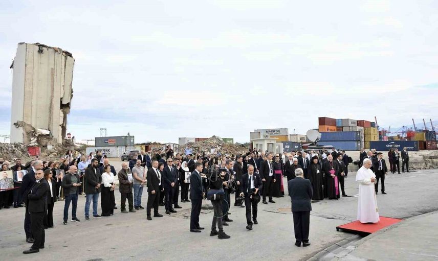 PAPA 14. LEO, LÜBNAN ZİYARETİNİN SON GÜNÜNDE 2020 YILINDA 200'DEN FAZLA KİŞİNİN ÖLÜMÜNE, 7 BİNDEN FAZLA KİŞİNİN YARALANMASINA YOL AÇAN PATLAMANIN GERÇEKLEŞTİĞİ BEYRUT LİMANINI ZİYARET ETTİ.