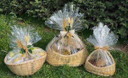 Papa’ya sunulan hediyeler üç ayrı sepette yer almakta: