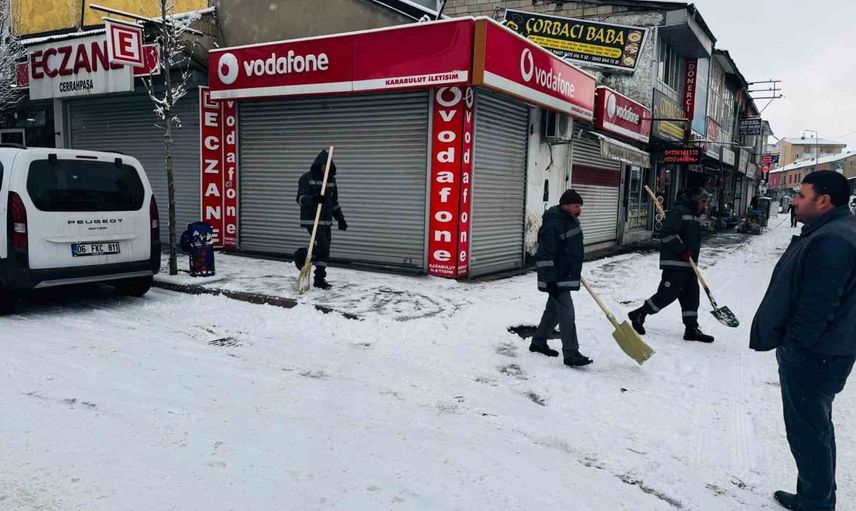 Özellikle ilçe genelindeki ana yolların ulaşıma açık tutulması için iş makineleriyle yapılan çalışmalar hız kesmeden devam ederken, şehir merkezinde de yaya ve araç trafiğinin güvenli bir şekilde sağlanması amacıyla kapsamlı temizlik çalışmaları gerçekleştiriliyor.