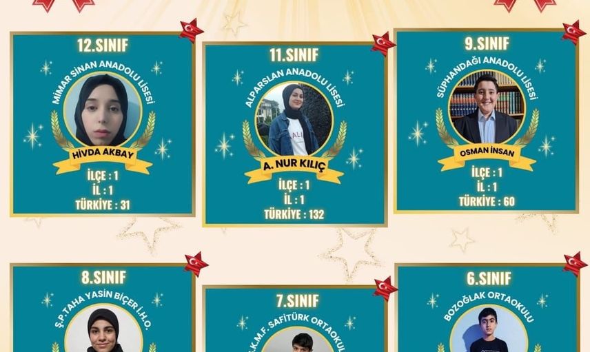 Yarışmaya katılan öğrenciler, il genelinde toplamda 6 birincilik, 5 ikincilik ve 6 üçüncülük ödülü kazandı. Ortaokul kategorisinde Ruken Kaya birinci olurken, M. Baran Barkut üçüncülüğü elde etti. Lise kategorisinde ise Hivda Akbay birincilik elde ederken, Osman İhsan ikinci ve Ümmü Gülsüm Çelik üçüncülük başarısını gösterdi.