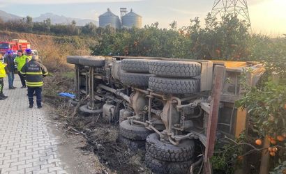 Hatay’ın Payas ilçesinde, bir hafriyat kamyonunun sürücüsü direksiyon hakimiyetini kaybederek narenciye bahçesine devrildi. Olay, Cumhuriyet Mahallesi’nde meydana geldi.