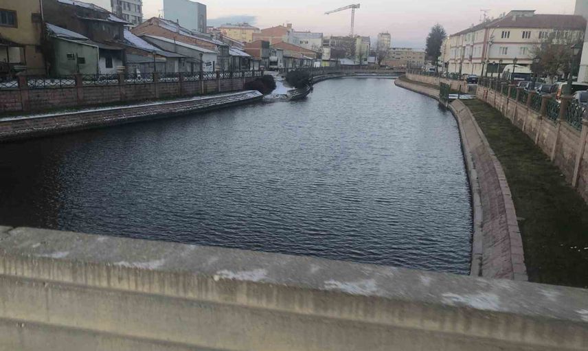 Eskişehir, dondurucu soğukların etkisiyle Porsuk Çayı'nın yüzeyinde oluşan buz tabakası ile adeta bir kartpostala dönüştü. Sabahın ilk ışıklarıyla birlikte gözler önüne serilen bu görüntü, şehre farklı bir atmosfer kattı.