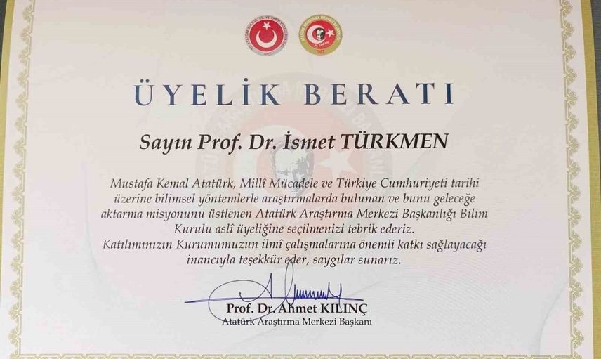 TOKAT (İHA) - TOKAT GAZİOSMANPAŞA ÜNİVERSİTESİ (TOGÜ) GÜZEL SANATLAR FAKÜLTESİ DEKANI PROF. DR. İSMET TÜRKMEN’İN ATATÜRK ARAŞTIRMA MERKEZİ BİLİM KURULU ASLI ÜYELİĞİNE SEÇİLMESİ ÜNİVERSİTENİN ULUSAL BİLİMSEL GÖRÜNÜRLÜĞÜNÜ GÜÇLENDİREN ÖNEMLİ BİR ADIM OLDU.