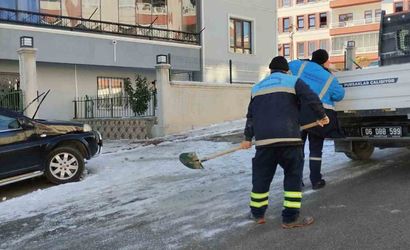 Pursaklar Belediyesi, kar yağışının ardından oluşabilecek buzlanma risklerine karşı can ve mal güvenliğini sağlamak amacıyla çalışmalarına hız kesmeden devam ediyor.
