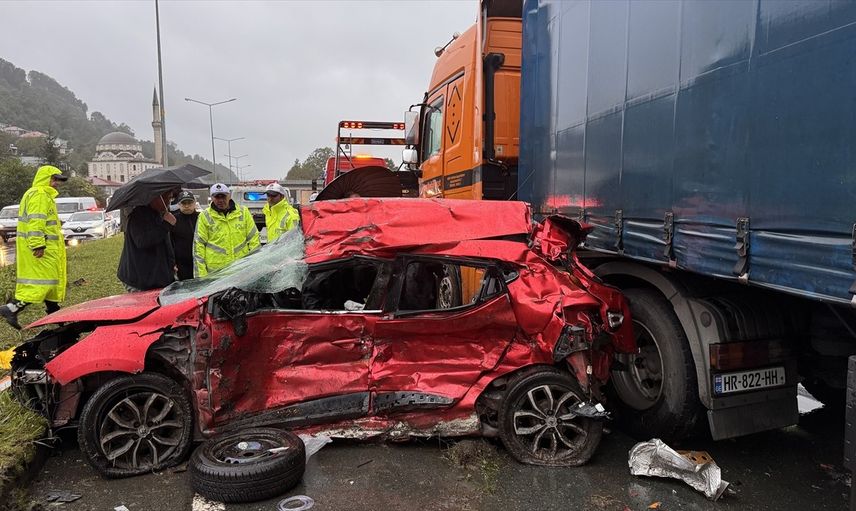 Otomobil, Rize yönüne seyir halinde olan D.M.'nin kullandığı HR-822-HH plakalı tıra çarptı. Kazanın hemen ardından, olay yerine 112 Acil Servis ve polis ekipleri yönlendirildi.