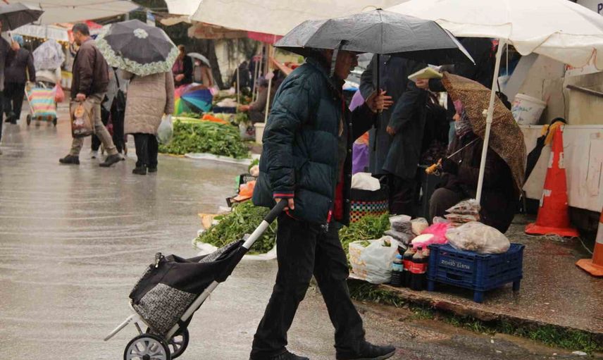 Günlerdir devam eden sağanak yağış, Menteşe Perşembe Pazarı'ndaki tezgahları seyrekleştirdi. Yağmur bazı esnafı etkilerken, şemsiyesini alan Muğlalılar alışverişe devam etti.