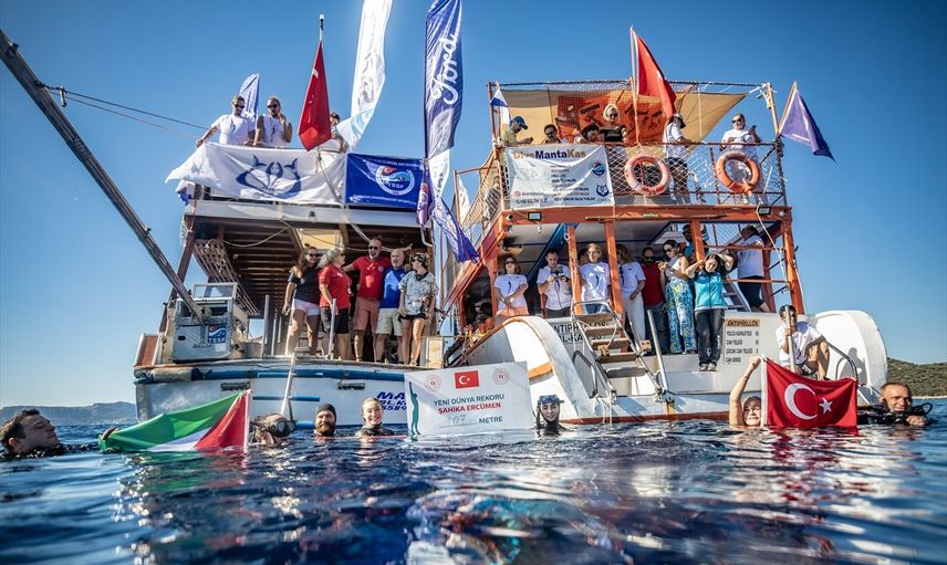 Milli sporcu Şahika Ercümen, Gazze halkına dayanışma mesajı vermek amacıyla Antalya'nın Kaş ilçesinde değişken ağırlık paletsiz dalış kategorisinde kendisine ait dünya rekorunu geliştirdi. Tekneyle açıldığı Hidayet Koyu açıklarında tek nefeste 107 metre derinliğe inen dünya dalış rekortmeni milli sporcu ve Birleşmiş Milletler "Sudaki Yaşam" savunucusu Şahika, "Gazze nefes alsın, karanlıklar aydınlığa çıksın" sloganıyla dalış yaptı.