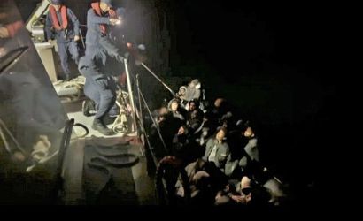 İZMİR’İN SEFERİHİSAR İLÇESİ AÇIKLARINDA DURDURULAN LASTİK BOT İÇERİSİNDE 43 DÜZENSİZ GÖÇMEN YAKALANDI.