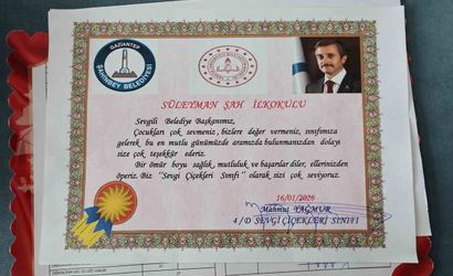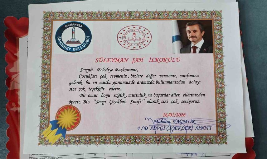 Süleyman Şah İlkokulu'nu ziyaret eden Başkan Tahmazoğlu, burada öğrencilerin kendisine sürpriz bir karne hazırladığını gördü. Bu karnede, verilen hizmetler için en yüksek puan olan 5 verildi. Başkan, "Çocukların bu anlamlı jesti beni çok mutlu etti. Teşekkür ediyorum," dedi.