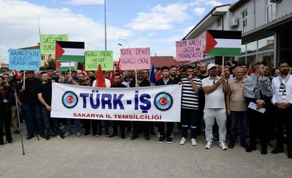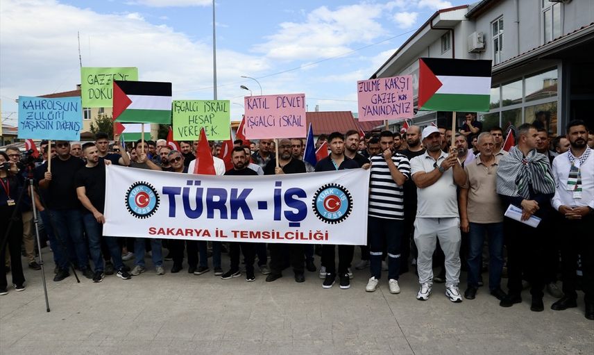 Toplu açıklama yapan TÜRK-İŞ Sakarya Temsilcisi Cemal Yaman, İsrail'in devam eden zulmünü kınadı. Yaman, "Bir bölgeyi ve medeniyeti haritadan silme operasyonları devam ediyor. İçimiz yanıyor. Yanmayan yürek, yürek değildir," dedi.