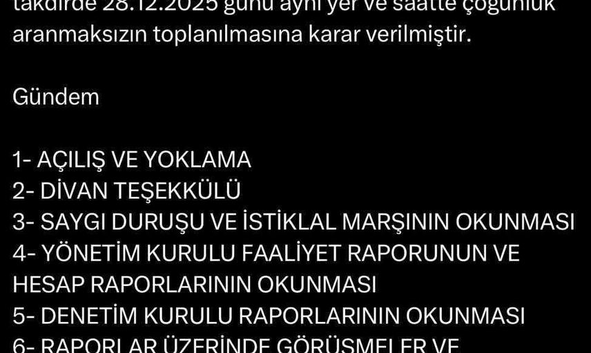 İstifanın ardından Sakaryaspor yönetimi, olağanüstü genel kurul toplantısı düzenleme kararı aldı. Kulübün sosyal medya hesaplarından yapılan açıklamada, toplantının 19 Aralık 2025 tarihinde saat 14.00'te Adapazarı Belediyesi Orhangazi Kültür Merkezi'nde gerçekleştirileceği belirtildi. Eğer çoğunluk sağlanamazsa, toplantının 28 Aralık 2025 tarihinde aynı yer ve saatte çoğunluk aranmaksızın yapılacağı ifade edildi.