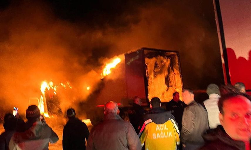 Yangın, gece saatlerinde Kurtderesi Mahallesi'nde ortaya çıktı. Seyir halindeki tır, henüz belirlenemeyen bir nedenle alev aldı.