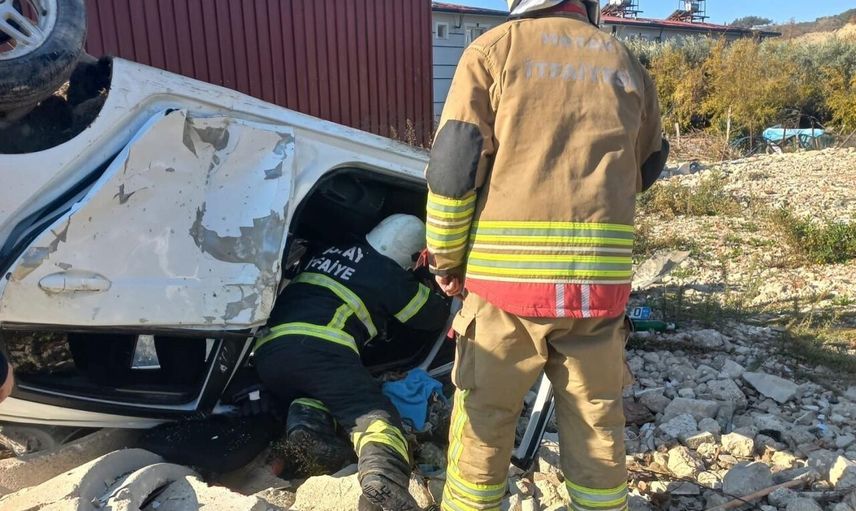Hatay'ın Samandağ ilçesinde bulunan Kuşalanı Mahallesi'nde bir otomobil, sürücüsünün kontrolünü kaybetmesi sonucu takla atarak ters döndü.