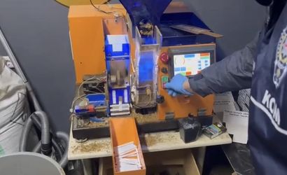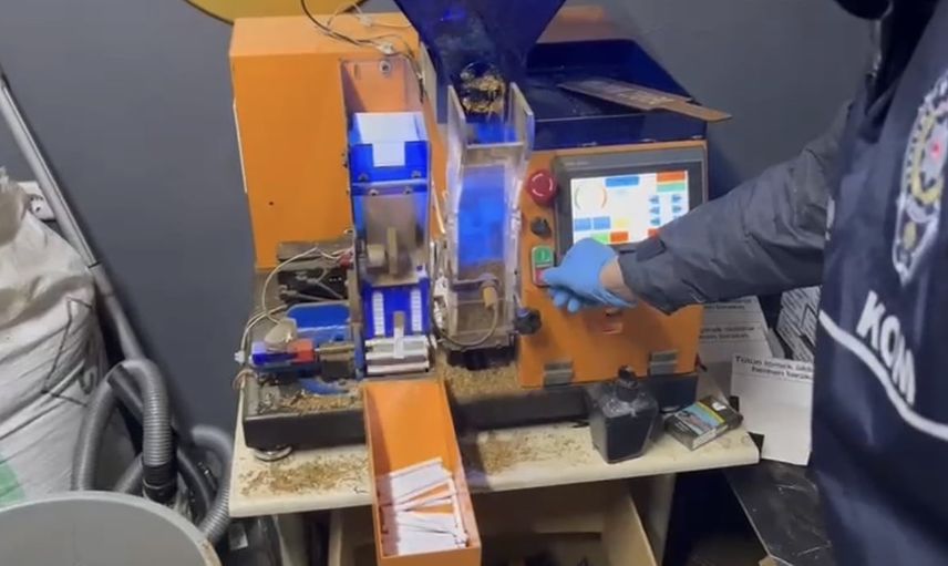 Yapılan aramalarda, 280 bin adet makaron, 40 bin adet makaron sigara, 130 kilogram kaçak tütün ve 1 adet elektrikli otomatik sigara sarma makinesi bulundu.