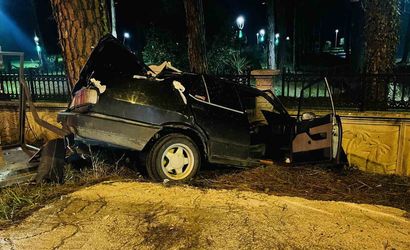 Samsun’un Terme ilçesinde meydana gelen kazada, kontrolden çıkan bir otomobil, önce otobüs durağına ardından bir ağaca çarparak hurda yığınına döndü.