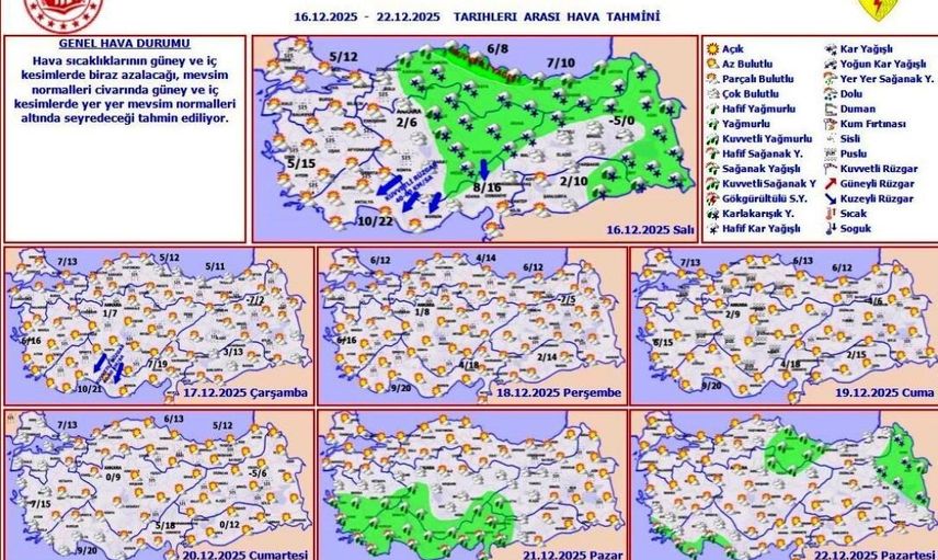 Öte yandan, MGM 10. Bölge Müdürlüğü, Samsun’da hava sıcaklıklarının 3-5 derece daha düşeceğini tahmin ediyor. Yarın ve Perşembe günü ayrıca gündüz sıcaklığının 4 dereceye kadar düşmesi beklenmektedir. Bugün için kuvvetli yağış uyarısı da yapıldı. MGM tarafından yapılan açıklamada, "Sabah saatlerinden sonra kıyı kesimlerde yer yer kuvvetli yağışlar beklenmektedir. Yağışların bölgenin yüksek kesimlerinde yer yer kuvvetli kar şeklinde olması öngörülmekte, bu nedenle yaşanabilecek buzlanma, don, kuvvetli rüzgarla tipi ile ulaşımda aksamalar gibi olumsuzluklara karşı dikkatli ve tedbirli olunmalıdır." denildi.