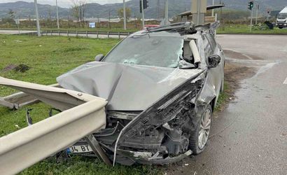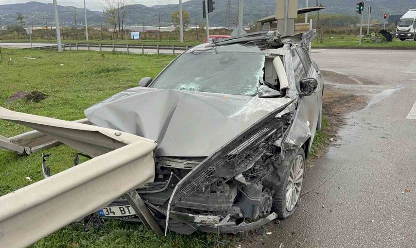 SAMSUN’DA OTOMOBİLİN KAMYONETE ÇARPIP BARİYERE GİRDİĞİ KAZADA 3 KİŞİ YARALANDI.