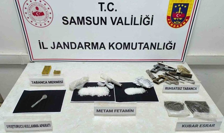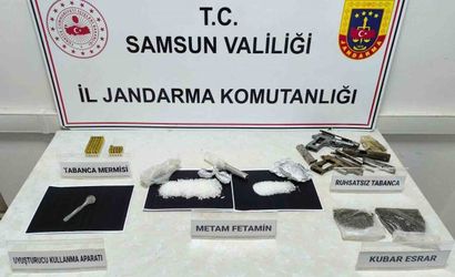 Edinilen bilgilere göre, jandarma ekipleri, yürüttükleri çalışmada bir şahsın ikametine baskın düzenledi. Yapılan aramada 235 gram metamfetamin, 126 gram kubar esrar, 2 adet ruhsatsız tabanca ile 1 adet uyuşturucu kullanma aparatı ele geçirildi.