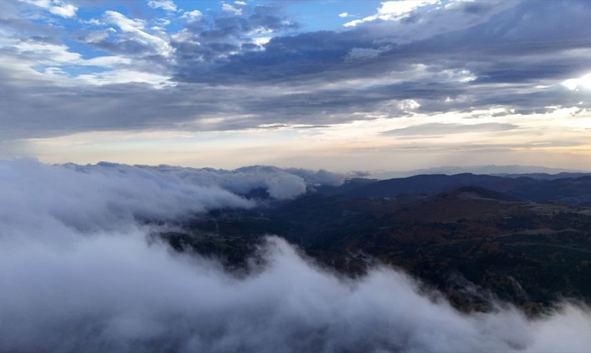 Samsun'un Alaçam ilçesinde 1650 rakımlı Dürtmen Dağı'nda meydana gelen "sis denizi", dronla kaydedildi.