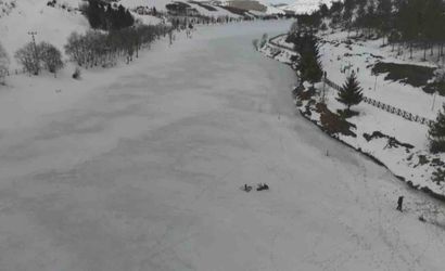 SAMSUN – Samsun'da doğa fotoğrafçısı olarak tanınan doktor, kamp yaptığı yayladaki donmuş göl üzerinde eşsiz anları dronla kaydetti.