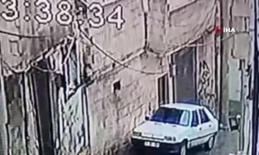 Güvenlik kameraları, sokakta park halindeki bir arabanın üzerine istinat duvarının devrildiğini gösterirken, olayın gerçekleştiği esnada araç içerisinde kimsenin olmaması olası bir felaketi önledi.