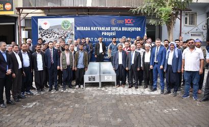 Şanlıurfa'nın Siverek ilçesinde, "Merada Hayvanlar Suyla Buluşuyor" projesi kapsamında 400 üreticiye sıvat dağıtımı yapıldı.