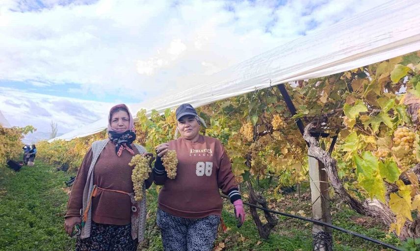 Manisa'nın Sarıgöl ilçesinde, 2025 yılına yaklaşılırken, örtü altında korunan üzümlerin hasadı aralık ayında da kesilmeye devam ediyor. Üreticiler, kaliteli ürünler elde ettiklerini ve yaş üzüm fiyatlarının 30-35 lira arasında seyrettiğini aktarıyor.