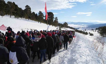 Sarıkamış Harekatı’nın 111. yılı anma etkinlikleri çerçevesinde binlerce insan, Kızılçubuk Toplanma Alanı’nda buluştu ve Ay Yıldız Tören Alanı’na doğru yürüyüşe geçti.