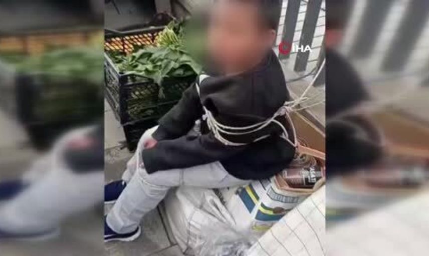 10 Aralık'ta saat 12.00 sularında meydana gelen olayda, küçük yaşta bir çocuğun bir tezgahtan eşofman çaldığı belirlendi. Çaldığı ürünle pazarı terk eden çocuk, bir süre sonra tekrar semt pazarına döndü. Esnaf, çocuk tarafından yapılan bu hırsızlık faaliyetini fark etti ve onu yakalayarak iple bağladı.