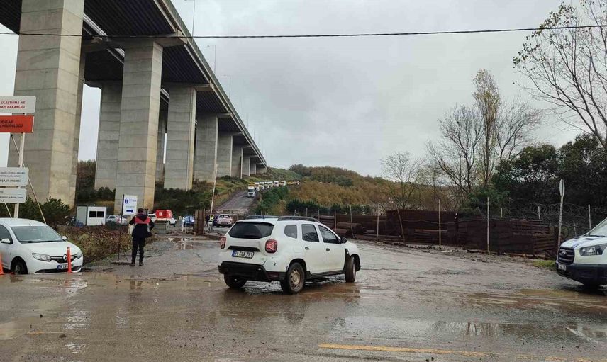 SARIYER'DE KİLYOS TÜNELİ İNŞAATINDA YAĞIŞ NEDENİYLE YOL ÇÖKTÜ