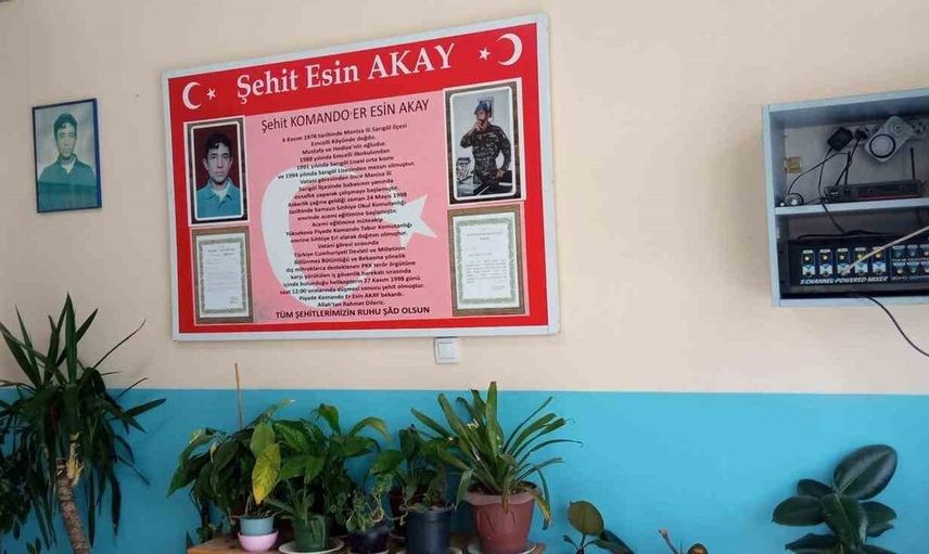 MANİSA'NIN SARIGÖL İLÇESİNDE ŞEHİT JANDARMA KOMANDO ER ESİN AKAY, ADINI TAŞIYAN İLKOKULDA DÜZENLENEN TÖRENLE ANILDI.