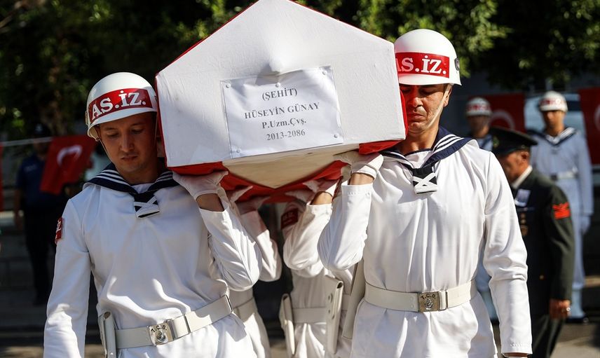 Konya'da nöbet sırasında rahatsızlandıktan sonra hastaneye kaldırılan ve burada şehit olan Piyade Uzman Çavuş Hüseyin Günay'ın cenazesi, Mersin'in Erdemli ilçesinde gerçekleştirilen törenle toprağa verildi.