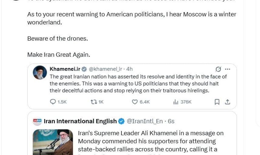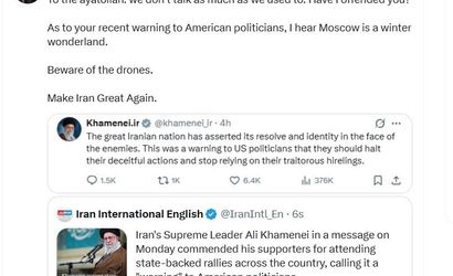 İran'daki rejim karşıtı protestoların artırdığı gerilim üzerine Graham, Hamaney'in Rusya'ya kaçacağına dair sözlere atıfta bulunarak, "Amerikan politikacılarına yaptığınız son uyarıya gelince, Moskova'nın bir kış harikalar diyarı olduğunu duydum" ifadelerini kullandı.