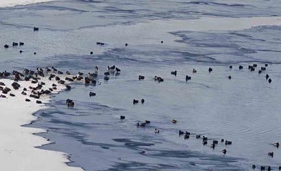 ERZURUM’UN AŞKALE İLÇESİNDE ETKİLİ OLAN SİBİRYA SOĞUKLARI, YABAN HAYATINI DA OLUMSUZ ETKİLİYOR. HAVA SICAKLIKLARININ GECELERİ EKSİ 35 DERECEYE KADAR DÜŞMESİ NEDENİYLE AŞKALE HES BARAJ GÖLETİ BÜYÜK ÖLÇÜDE BUZ TUTTU.