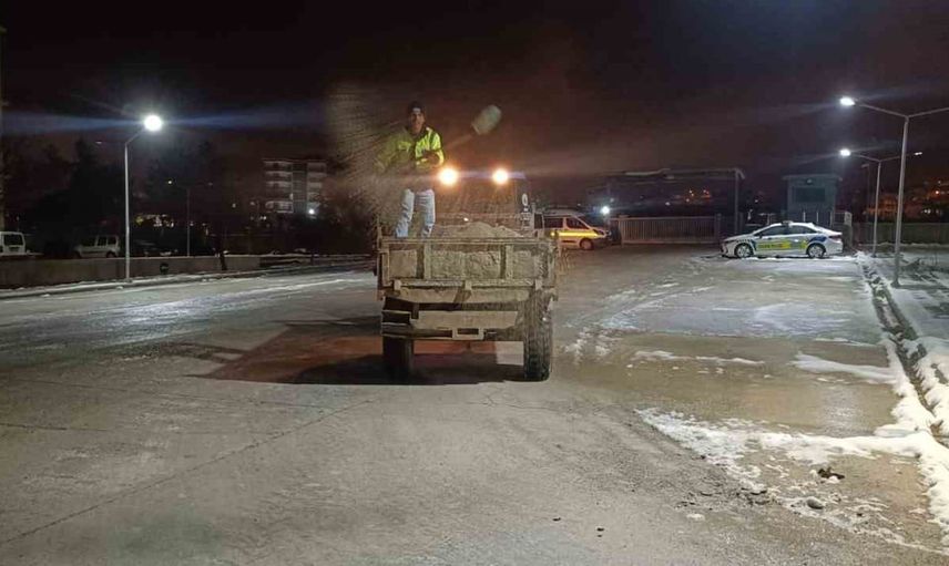 Belediye ekipleri, sabahın erken saatlerinden itibaren aralıksız sahada kalarak gece mesaisine devam ediyor. Tuzlama ve solüsyon uygulamalarının yanı sıra, kaldırımlarda ve yaya yollarında temizlik çalışmaları titizlikle gerçekleştiriliyor.