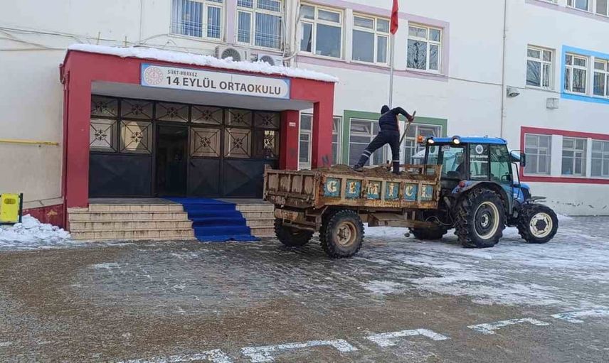 Siirt Belediyesi ekipleri, etkisini artırarak süren kar yağışı ve olumsuz hava koşulları nedeniyle vatandaşların günlük yaşantısının aksamaması için kar küreme ve tuzlama çalışmaları yürütüyor.