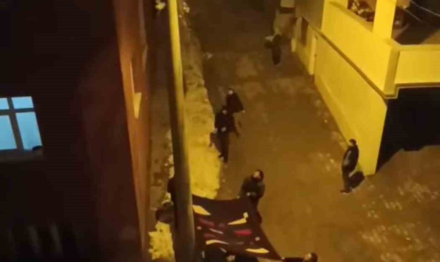 Mahalleli, mahsur kalan kediyi aşağı indirmek için bir battaniye açarak çalışma başlattı. Kedinin durumu içler acısıydı, ancak mahallelinin hızlı müdahalesi sayesinde kedi kurtarıldı. Kedi, battaniyenin üzerinden atlayarak güvenli bir şekilde yere indi.