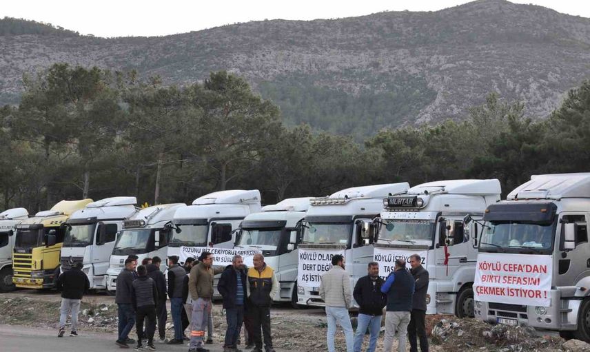 Protesto esnasında kamyonların üzerine çeşitli pankartlar asan şoförler, "Köylü olarak çöp değil iş istiyoruz", "Tozunu biz çekiyoruz sefasını başkaları sürüyor" ve "Taşeron istemiyoruz" yazdılar. Bölgede yaşayan kamyon şoförleri, nakliye işlerinde yerel kooperatiflerin ve şahısların yerine şehir dışından gelen taşeron firmaların tercih edilmesinin haksızlık olduğunu dile getirdi.