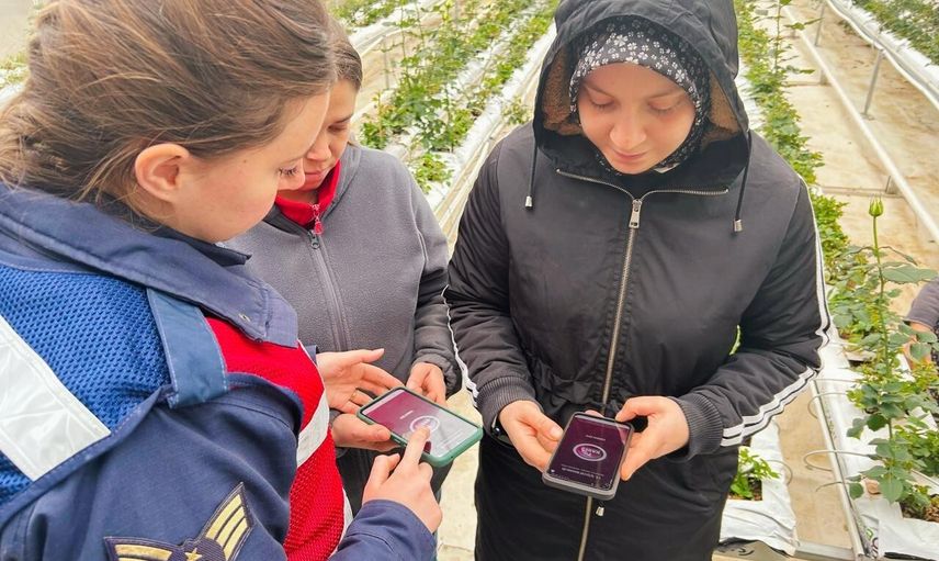 Kütahya İl Jandarma Komutanlığı Aile İçi Şiddetle Mücadele Çocuk Kısım Amirliği ve Simav İlçe Jandarma Komutanlığı, önemli bir etkinliğe imza atarak Simav ilçesi Çitgöl Beldesi’ndeki çiçek serasında çalışan 54 kadına Kadın Acil Destek Uygulaması (KADES) hakkında bilgilendirme yaptı.