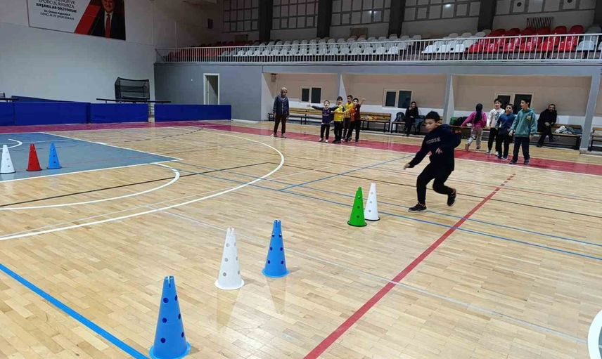 Türkiye Sportif Yetenek Taraması ve Spora Yönlendirme Programı çerçevesinde düzenlenen etkinliklerle çocuklara, dikkat, hız ve koordinasyon gibi alanlarda yeteneklerini sergileme imkanı sunulmakta.