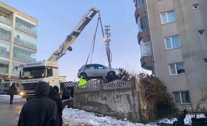 Apartman bahçesine düşen otomobil, olay yerine çağrılan çekici yardımıyla kaldırıldı. Polis ekipleri, kaza ile ilgili gerekli incelemeleri başlattı.