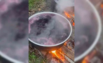 Sinop’un köylerinde geleneksel kış hazırlıkları çerçevesinde kazanlar kaynamaya başladı. Erfelek ilçesinde yetiştirilen kokulu siyah üzümler, köylüler tarafından zamanla pekmeze dönüştürülüyor.