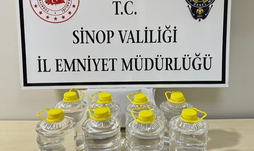 Sinop'un Gerze ilçesinde, Sinop İl Emniyet Müdürlüğü tarafından gerçekleştirilen bir operasyonda 20 litre etil alkol ele geçirildi.