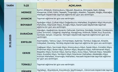 Valilik, taşımalı eğitime ara verilen ilçe ve köylerde görev yapan engelli ve hamile kamu görevlilerinin 31 Aralık tarihine kadar idari izinli sayılacaklarını da duyurdu.
