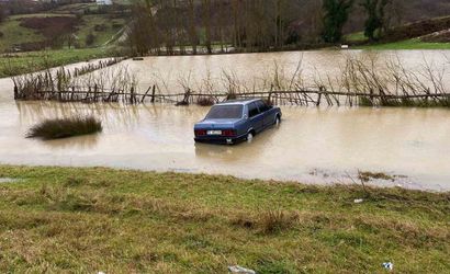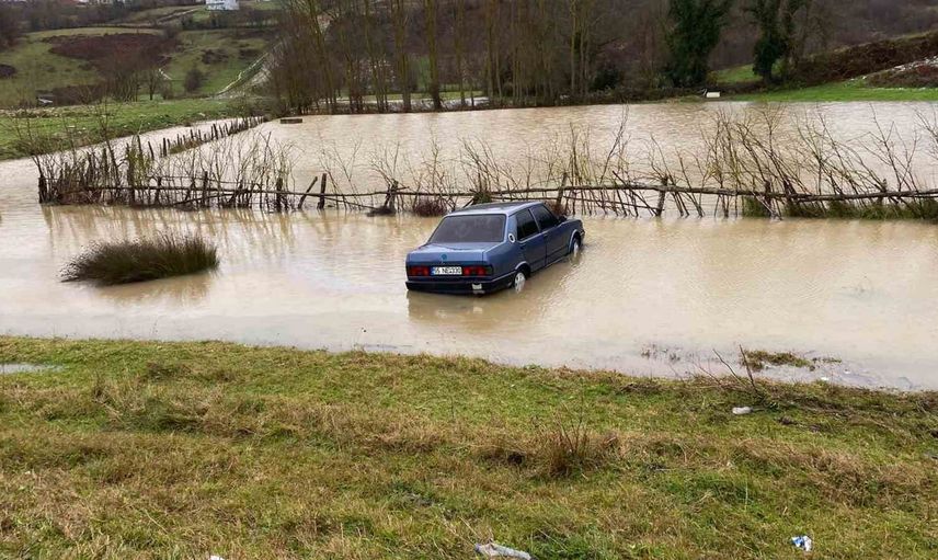 Sinop’ta meydana gelen ilginç bir kaza sonrası, sağanak yağışın getirdiği su birikintisi felakete neden oldu. Sürücüsünün direksiyon hakimiyetini kaybetmesi sonucu, bir otomobil şarampole düşerek geniş bir su birikintisine saplandı.